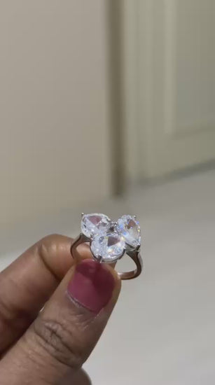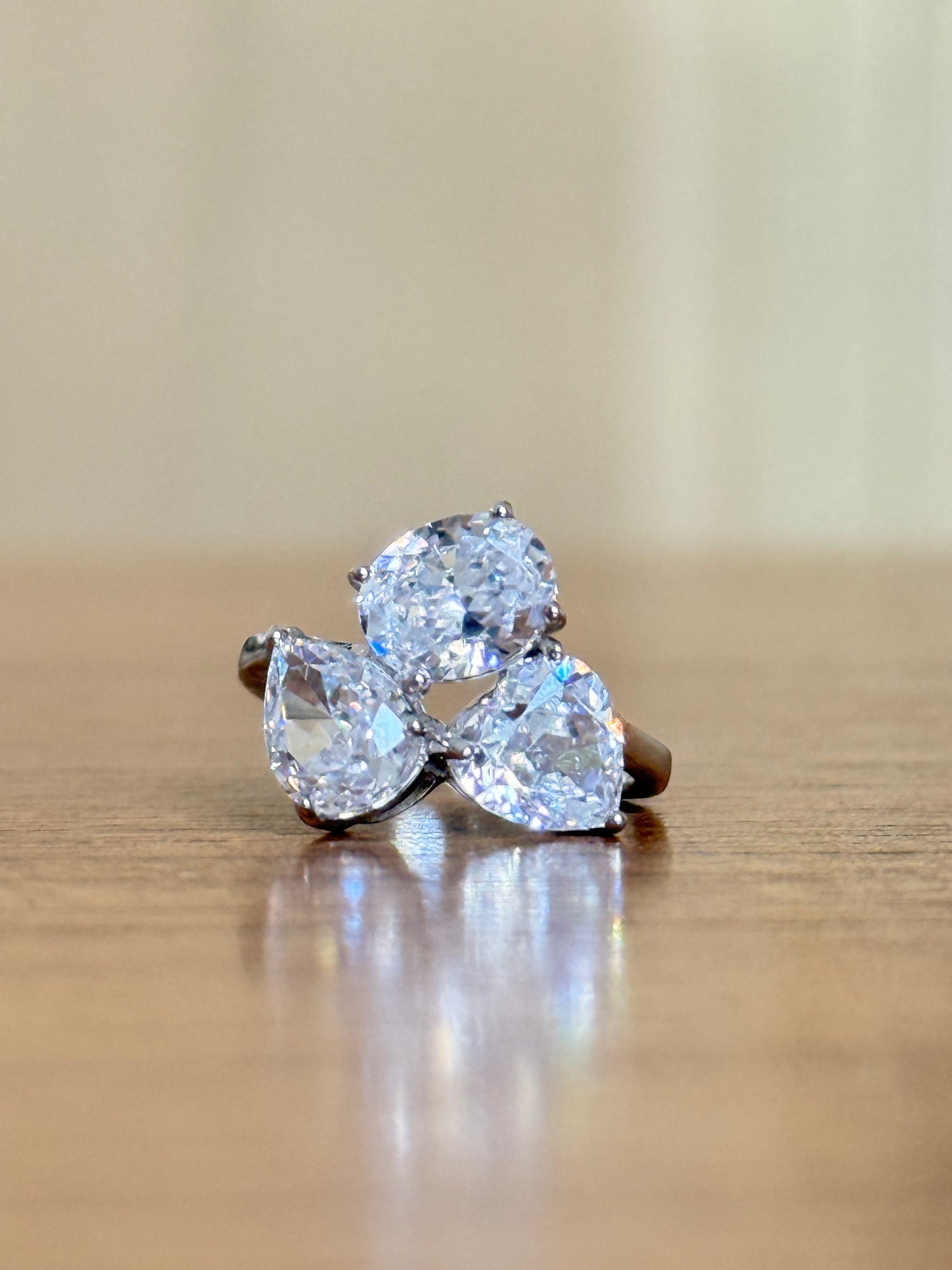 - Stones: 3 Pear-Cut Simulated Diamonds (D-Color)